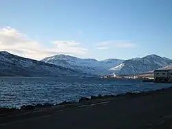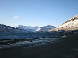 Die unteren Hänge der hohen umgebenden Bergrücken und das flache Fjordinnere sind bewachsen mit Gras und Blaubeersträuchern. Es gibt eine Waldaufzucht oberhalb der Stadt.[6]
