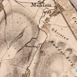 - ↑ Genau eingezeichnet auf der französischen Katasterkarte von Mehlem, Section A dite Roter Berg, 1810, 1:2500, Hauptstaatsarchiv Düsseldorf, Bestand Regierungsbezirk Köln, Karten 1–34