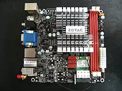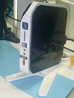 Die Bezeichnung Nettop wurde seit 2008 bis Anfang der 2010er Jahre für im Leistungsumfang mit seinerzeitigen Netbooks vergleichbare Desktop-PCs verwendet,[41] wie sie 2008 z. B. in Form der Asus EeeBox b202 oder dem MSI Wind PC angeboten waren. Nettops konnten entweder als Komplettsystem oder auch in Einzelteilen gekauft werden. Mainboards für Nettops waren meist im Mini-ITX-Format mit aufgelötetem Prozessor und bereits aufgesetztem Kühler erhältlich.
