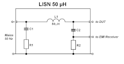 Netznachbildung, wie sie im Prüfbetrieb verwendet wird