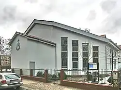 Der Grundstein für den heutigen Kirchenbau ist am 6. März 2001 gelegt worden; am 9. Dezember 2001 wurde er geweiht. Es handelt sich um ein langgestrecktes Gebäude, das sich tief in das Grundstück hinein erstreckt. Der Eingang zum Kirchenbau befindet sich an der von der Straße abgewandten Seite des Grundstücks. Der Kirchensaal mit polygonalem Grundriss bildet den Hauptteil der Anlage. Wesentliches Element der Fassadengliederung sind vertikal ausgerichtete Fensterbänder, deren Höhe mit der des Daches variieren und damit gestaffelt wirken. Die umgebende Bebauung ist im Wesentlichen gründerzeitlich geprägt und als Blockrandbebauung ausgeführt. Die Kirche nimmt diesen Gedanken nicht auf. Stattdessen steht das Bauwerk losgelöst von der umgebenden Bebauung auf dem Grundstück.