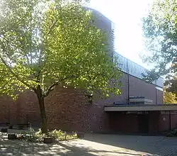 Die seit dem 1. Januar 1973 selbstständige evangelische Gemeinde feierte ihre Gottesdienste zunächst in Gotteshäusern der benachbarten Stadtteile. 1980 wurde ein Kirchenbauverein gegründet, der ein 1986 eingeweihtes Gemeindezentrum finanzierte. Bis 1991 wurde die gemeindeeigene Trinitatiskirche nach Plänen Theodor Nießens gebaut. Die Kirche aus rotbraunen Ziegeln hat ein kupfernes Dach. Die denkmalgeschützten Kirchenbänke wurden aus Beständen der namensgleichen Trinitatiskirche in der Kölner Innenstadt übernommen. Am 26. Mai 1991 wurde die Kirche eingeweiht. 1998 erhielt die Kirche drei von der Glasmalerin Katja Ploetz gestaltete Fenster. Am 27. September 2009 wurden mit einem Festgottesdienst der 15 Meter hohe Turm und das Geläut aus drei Glocken eingeweiht.[25]