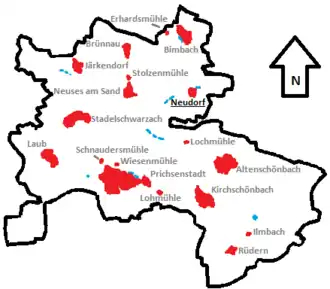 ![]() Lage von Neudorf (fett) im Prichsenstädter Gemeindegebiet