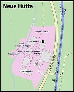 1870 veranlasste der damalige Eigentümer den Bau eines zweiten, deutlich kleineren Ofens auf dem Hüttengrundstück, dessen Reste heute neben dem Hauptgebäude der Neuen Hütte stehen.[2][7]