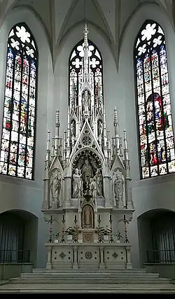 1978 wurden bei der letzten Renovierung die Gewölberippen durch Peter Burkart wieder malerisch angedeutet. Die neugotische Einrichtung ist nur noch im marmornen Hochaltar von Joseph Knabl, den Seitenaltären und der Kommunionbank erhalten.