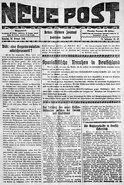 ![]() Neue Post, Titelseite vom 18. Februar 1919
