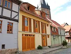 - ↑ Hans-Hartmut Schauer, Das städtebauliche Denkmal Quedlinburg und seine Fachwerkbauten, Verlag für Bauwesen Berlin 1990, ISBN 3-345-00233-7, Seite 83