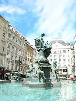 Der Donnerbrunnen in der Mitte des Platzes wurde 1739 von Georg Raphael Donner geschaffen. Sein eigentlicher Name ist Providentiabrunnen, er ist auch als Mehlmarktbrunnen bekannt. Die Bronzeskulpturen sind Kopien, die Originale befinden sich im Wien Museum. Nach dem Bildhauer wurde die kurze Donnergasse benannt, die den Neuen Markt mit der Kärntner Straße verbindet.
