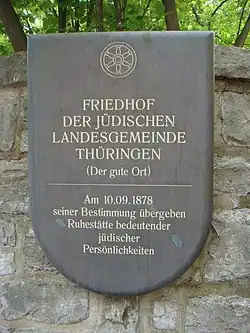 Der Gute Ort in Trägerschaft der Jüdischen Landesgemeinde Thüringen ist die größte und einzige jüdische Begräbnisstätte in Thüringen, die noch belegt wird.[2][3] Das Landesamt für Denkmalpflege und Archäologie Thüringen führt den Friedhof seit 1994 als „Kulturdenkmal historische Park- und Gartenanlage – aus geschichtlichen und künstlerischen Gründen“.[4] Er liegt auf einem etwa 1,40 ha großen,[5] sanft ansteigenden Gelände und ist von einer Einfriedung umgeben.