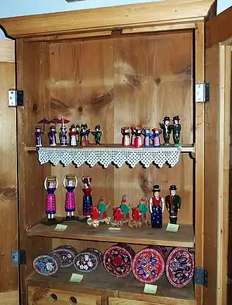 Die Holzwaren wurden im Familienverband hergestellt, wobei jedes Haus eine andere Spezialität hatte. Zum einen wurden haus- und landwirtschaftliche Gegenstände gefertigt, zum anderen Spielwaren. Produziert wurden Pinselgriffe, Spanschachteln, Teller, Löffel, Spielzeug. Ein Großteil der Produkte wurde auf Salzschiffen und Holzflößen in die österreichischen Kronländer exportiert.[12]