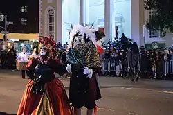 Im Jahr 2001 präsentierte die Parade ein Puppenspiel, das für seine Kunstfertigkeit gefeiert wurde und in die Geschichte der Stadt einging. Nach den Anschlägen vom 11. September 2001 wurden stadtweit und landesweit Veranstaltungen entweder gestrichen oder verschoben. Die Organisatoren glaubten, dass die Parade der Stadt eine dringend benötigte emotionale Entspannung verschaffen, die Gemeinschaft reformieren und ihr helfen würde, den Heilungsprozess zu beginnen. Sie waren der Meinung, dass dies die positivste Art und Weise war, wie sie als Künstler der Stadt in einer so verzweifelten Zeit dienen konnten. „Das ist die Bedeutung der tanzenden Skelette, die den Marsch immer anführen: Sie wissen besser als jeder andere, was sie verloren haben, und deshalb tanzen sie diese eine Nacht im Jahr, um das Leben zu feiern“, sagte Fleming in einem Interview mit CNN.