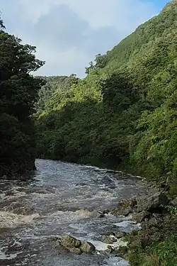 ![]() Flussmündung (links die Tasmansee, rechts der SH 67) | ||