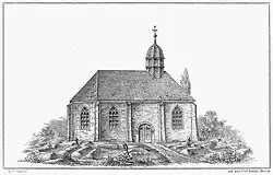 Im Jahr 1850 wurde die Kirche geschlossen, weil sie baufällig geworden war. Der verhältnismäßig frühe Verfall der Kirche ist auch auf die Anfangsjahre zurückzuführen, da in den ersten 40 Jahren „durch Sturm und Wetter das unvollendete Mauerwerk […] ruiniert wurde.“[36] Gutachten ergaben, dass die Renovierungskosten genauso kostspielig wie ein Neubau werden würde. Im Jahr 1856 wurde die Kirche abgetragen.