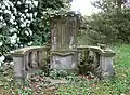 1 | 1762 | steinerner Podest mit Inschrift | Inschrift nicht mehr leserlich, über das Podest ist eine steinerne „Papierrolle“ gelegt; Standort: gegenüber der Friedhofsverwaltung |
