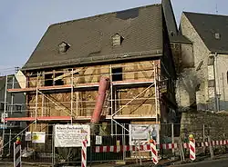 Dieser Fachwerkbau des 17. Jahrhunderts ist besonders durch seine sehr gleichmäßig gestaltete Balkenstruktur mit quadratischen Gefachen und Feuerböcken an der Hauptfassade bedeutsam. Diese Gebäudeseite war dem nicht mehr erhaltenen reifenbergischen Hofgut zugewandt. Offenbar wurde der Bau später mit einem zusätzlichen Drempel versehen. Der angebaute ehemalige Stall dürfte in etwa aus der Entstehungszeit des Haupthauses stammen.