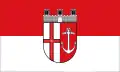 Hissflagge: „Die Flagge ist rot-weiß quergestreift mit dem Wappen in der Mitte.“ |