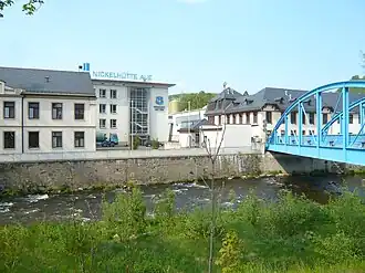 Die heutige Nickelhütte Aue am Schwarzwasser, bedeutendster Gewerbebetrieb im Ortsteil Niederpfannenstiel.