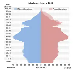 - ↑ Datenbank Zensus 2011, Niedersachsen, Alter + Geschlecht
