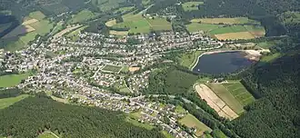 ![]() auf Niedersfeld mit Hillestausee Blick aus der Luft etwa in Richtung Osten