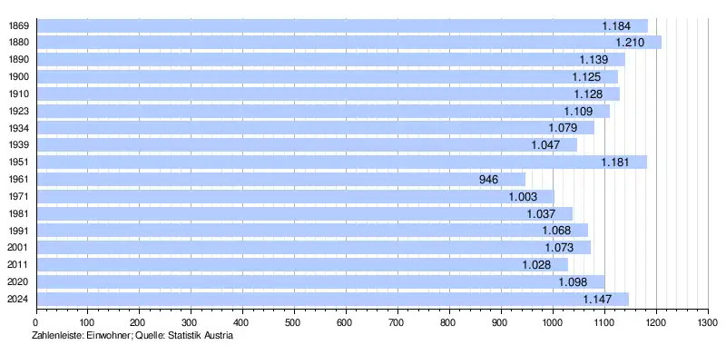 - ↑ Statistik Austria: Bevölkerung am 1.1.2025 nach Ortschaften (Gebietsstand 1.1.2025), (ODS, 500 KB)
