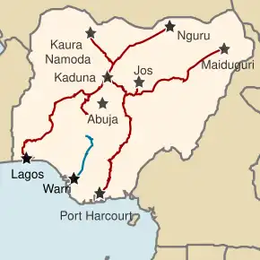 - ↑ Can Nigeria’s renovated railway unite north and south? In: BBC News. 13. Februar 2013 (bbc.com [abgerufen am 14. Mai 2022]).