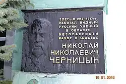 - ↑ a b c d e MiningWiki - свободная шахтёрская энциклопедия: Черницын Николай Николаевич (abgerufen am 13. Oktober 2019).
