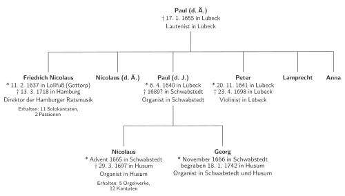 - ↑ a b Nicolaus-Bruhns-Gesellschaft (Hrsg.): Festschrift zum 300. Geburtstag von Nicolaus Bruhns 1665–1697. Petersen, Husum 1965, S. 37.