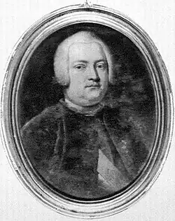 - ↑ Da er im Alter von 51 Jahren verstarb, kam es wohl in manchen Quellen zu der Angabe, er sei 1714 geboren worden.