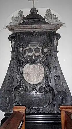 In der Klosterkirche findet sich an deren Südwand ein großes Epitaph aus schwarzem und weißem Marmor. Das Denkmal zeigt zwischen zwei Voluten, gehalten von zwei Putten das Wappen der Grafen von Salm-Reifferscheidt. Das Epitaph ist das Grabdenkmal des Grafen Erich-Adolph von Salm-Reifferscheidt († 1673) aus dem Kloster Bethlehem. Es wurde bei der Aufhebung des Klosters Bethlehem und dessen anschließenden Verkauf 1805 zunächst in die alte Kirche St. Lambertus in Bedburg übertragen, bevor es in Folge des Abrisses dieser Kirche 1895 im Nikolauskloster aufgestellt wurde.[5]
