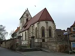 Die spätgotische Saalkirche wurde im 15./16. Jahrhundert erbaut. Sie besteht aus einem 1514 gebauten Langhaus, einem eingezogenen, dreiseitig geschlossenen Chor von 1499 im Osten, der von Strebepfeilern gestützt wird, der Sakristei an der Nordwand des Chors und dem 1521 angefügten Kirchturm im Westen.