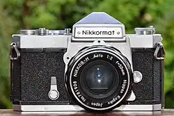 Die Nikkormat FS ist eine vereinfachte Version der Nikkormat FT ohne Belichtungsmessung und ohne Möglichkeit der Spiegelarretierung. Wenn die Nikkormat FT zumindest in Deutschland eine recht seltene Kamera ist, kann man die Nikkormat FS getrost als Rarität bezeichnen.[3]