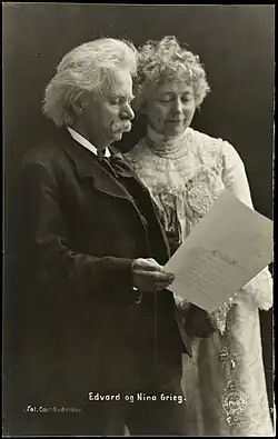 In den ersten Ehejahren erzielte Edvard Grieg vor allem mit Klavierunterricht ein Einkommen und zugleich Nina Grieg als Gesangslehrerin. Edvard Grieg wurde bald als Komponist und Dirigent immer erfolgreicher und bekannter, unterstützt von seiner Frau, die sich von Anfang an sehr für das Werk ihres Mannes engagierte. Sie war für ihn musikalische Partnerin, künstlerische Beraterin und Assistentin. Aus vielen Briefen von Edvard Grieg geht hervor, dass sie eine wichtige Ratgeberin für seine kompositorische Arbeit war. Er widmete ihr seine Lieder op. 4 und op. 18.[1] Mit ihm zusammen unternahm sie zahlreiche Konzertreisen durch Europa. Im Grieg-Archiv der Öffentlichen Bibliothek in Bergen befinden sich mehr als 300 online abrufbare Konzertprogramme, mit denen die Reisen und Auftritte von Edvard und Nina Grieg in den Ländern Norwegen, Deutschland, Dänemark, England, Schweden, Frankreich, Niederlande, Italien, Österreich, Polen, Tschechien und Belgien nachvollzogen werden können.[5]