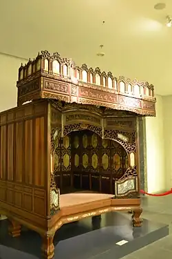 - Ausstellung der Volkskunde von Ningbo: In dieser Abteilung werden Kunstgewerbliche Gegenstände und Handwerkszeug präsentiert. Ein Glanzstück der Ausstellung ist ein Brautbett mit einer aufwendigen Holzschnitzerei.[3]