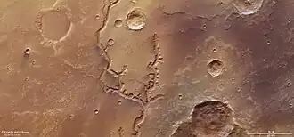 Nirgal Vallis ist 610 km lang und das Überbleibsel eines Flusses, der einst über die Marsoberfläche strömte. Es ist benannt nach dem Babylonischen Gott des Krieges.