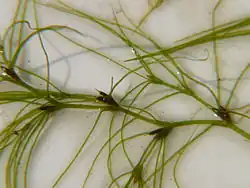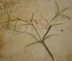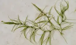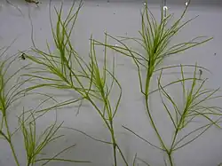 Illustration von Najas-Arten: A–C Großes Nixenkraut (Najas marina) | ||||||||||||