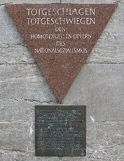 An die Verfolgung und Ermordung Homosexueller während der Nazi-Diktatur erinnert eine Gedenktafel am Zugang zum U-Bahnhof Nollendorfplatz.
