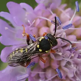 Nomada flavopicta ist eine Biene aus der Familie der Apidae. Die Art sieht Nomada emarginata sehr ähnlich.