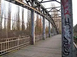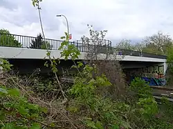 Mit der Yorckstraße ist der Ortsteil Schöneberg im Bezirk Tempelhof-Schöneberg betreten. Auf den Brücken liegen S-Bahn, Fernbahn und das Gleis der Museumsbahn zur Monumentenhalle. Eine der Brücken ist zur Nutzung für den Hauptweg geöffnet. Hier geht es in eine Brach- und Wiesenfläche zwischen den Gewerbegebäuden der Kreuzbergstraße und den Fernbahngleisen zur Monumentenbrücke.