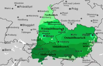 - Nordosten ↔ Oberostfränkisch, nicht-oberdeutsche Dialekte