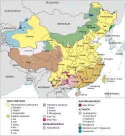 Im Süden Chinas werden verschiedene chinesische Sprachen gesprochen wie beispielsweise Gan, Hakka, Min, Wu, Xiang und Yue (Kantonesisch). Im Südwesten, den heutigen Gebieten von Sichuan und Yunnan, der während der Ming- und Qing-Dynastie massive Einwanderung aus dem Norden erfuhr, spricht man heute Dialekte des Mandarin. Hinzu kommen die nicht-chinesischen Minderheitensprachen.