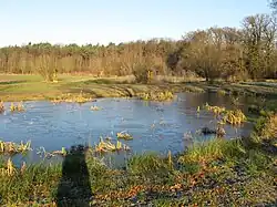 In den Kleingewässern haben sich viele Amphibienarten angesiedelt. Der gefährdete Kammmolch hat hier eine große Population.
