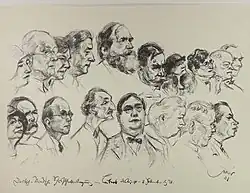 1930 gab es eine Ausstellung Nordische Karikatur, zu der Fred J. Domes, unterstützt von Alfred Mahlau, im Auftrage der Gesellschaft eine Mappe mit Arbeiten von 18 beteiligten Künstlern herausgab, davon 50 nummerierte Exemplare auf handgeschöpftem Bütten.[8]