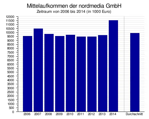 2015 verzeichnete die nordmedia ein Fördermittelaufkommen von 11.123.408 Euro, wobei 234 Projekte unterstützt wurden. Die Mittelgeber waren nach den testierten Zahlen für 2014: