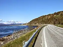 Von Sørkjosen aus führt die E6 weiter nach Storslett und von dort aus weiter in den Norden weitgehend an der Küste entlang zum Ort Oskfjordhamn. Von dort führt die Straße weiter in den Osten in die Gemeinde Kvænangen. In Storslett zweigt von der E6 der Fylkesvei 8650 in das Tal Reisadalen ab. Ebenfalls von der E6 zweigt der Fylkesvei 866 ab. Dieser führt in den Nordwesten der Nordreisas und in einem Unterwassertunnel unter der Meeresenge Maursundet in die Kommune Skjervøy.[3]