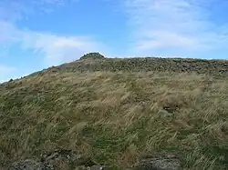 Der felsige Gipfel des Hügels ist von einer ovalen Mauer umgeben, die etwa 50,0 × 30,0 m misst. Der Komplex hat seinen Zugang auf der Nordostseite. Die heutige Form stellt wahrscheinlich die letzte Phase der Hügelbefestigung dar. Im Gipfelbereich sind die Reste von Rundhütten und Ackerterrassen sichtbar. Auf den niedriger liegenden Terrassen sind die Reste von Mauern erkennbar, die wohl zur Befestigung gehören.