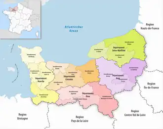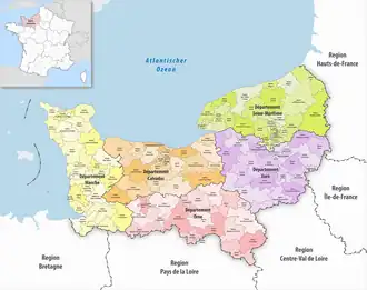 Die Normandie (französisch []) ist eine französische Region. Vorläufer bestehen seit 996 n. Chr. als historische Provinzen im Norden Frankreichs. Das Gebiet gliedert sich in das untere Seinegebiet (die frühere Region Haute-Normandie) nordwestlich von Paris und das Land in Richtung Westen (frühere Region Basse-Normandie) mit der Halbinsel Cotentin.