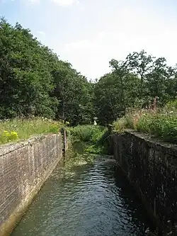 Weiter nach Westen und dann nach Nordwesten erreicht der Kanal die Schleuse von Briggate, die von der Briggate Brücke aus zu sehen ist. Die Mühle befindet sich südlich der Brücke, während der Mühlenteich und die Schleuse im Norden liegen. Etwas weiter nördlich überquerte die Eisenbahn den Kanal. Die gemauerten Pfeiler sind noch vorhanden, aber die rücke wurde durch eine hölzerne Fußgängerbrücke ersetzt.