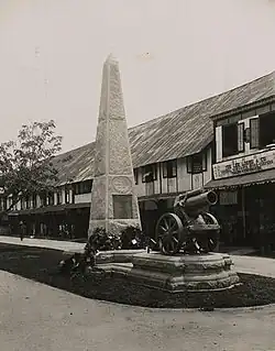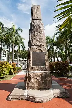 Das Denkmal wurde ursprünglich in der Bond Street, der heutigen Jalan Gaya, aufgestellt. Durch die Verlagerung in den KK City Park in den 1970er Jahren erfuhr der Sockel Änderungen hinsichtlich Form und Höhe. Außerdem wurden das Denkmal um eine Bronzeplatte am Obelisken und eine Gedenktafel an der Stelle der früheren Kanone erweitert.