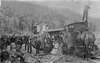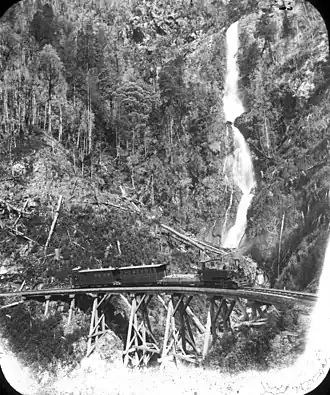 Die Strecke wurde 1896 eröffnet, um Erz von den Williamsforder Bergwerken nach Zeehan zu bringen, wo es in Züge mit der Spurweite von 1067 mm (3 Fuß 6 Zoll) für den Transport nach Burnie umgeladen wurde.[4] Die schmale Spurweite wurde wegen des extrem schwierigen Geländes der Eisenbahnstrecke gewählt, wofür mehrere große Brücken benötigt wurden, darunter eine am Fuße der Montezuma-Fälle. Die Eisenbahn wurde 1932 geschlossen.