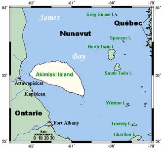 | Geographische Lage | 53° 18′ N, 80° 0′ W | |
